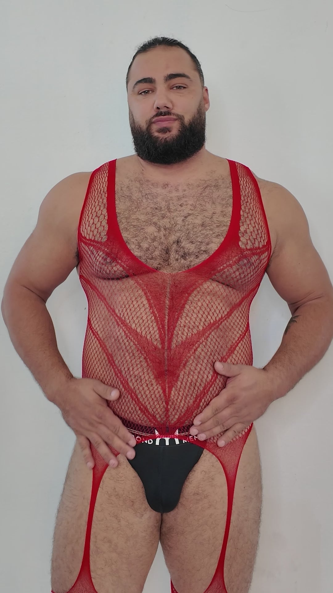 Red Hollow Fishnet Bodysuit