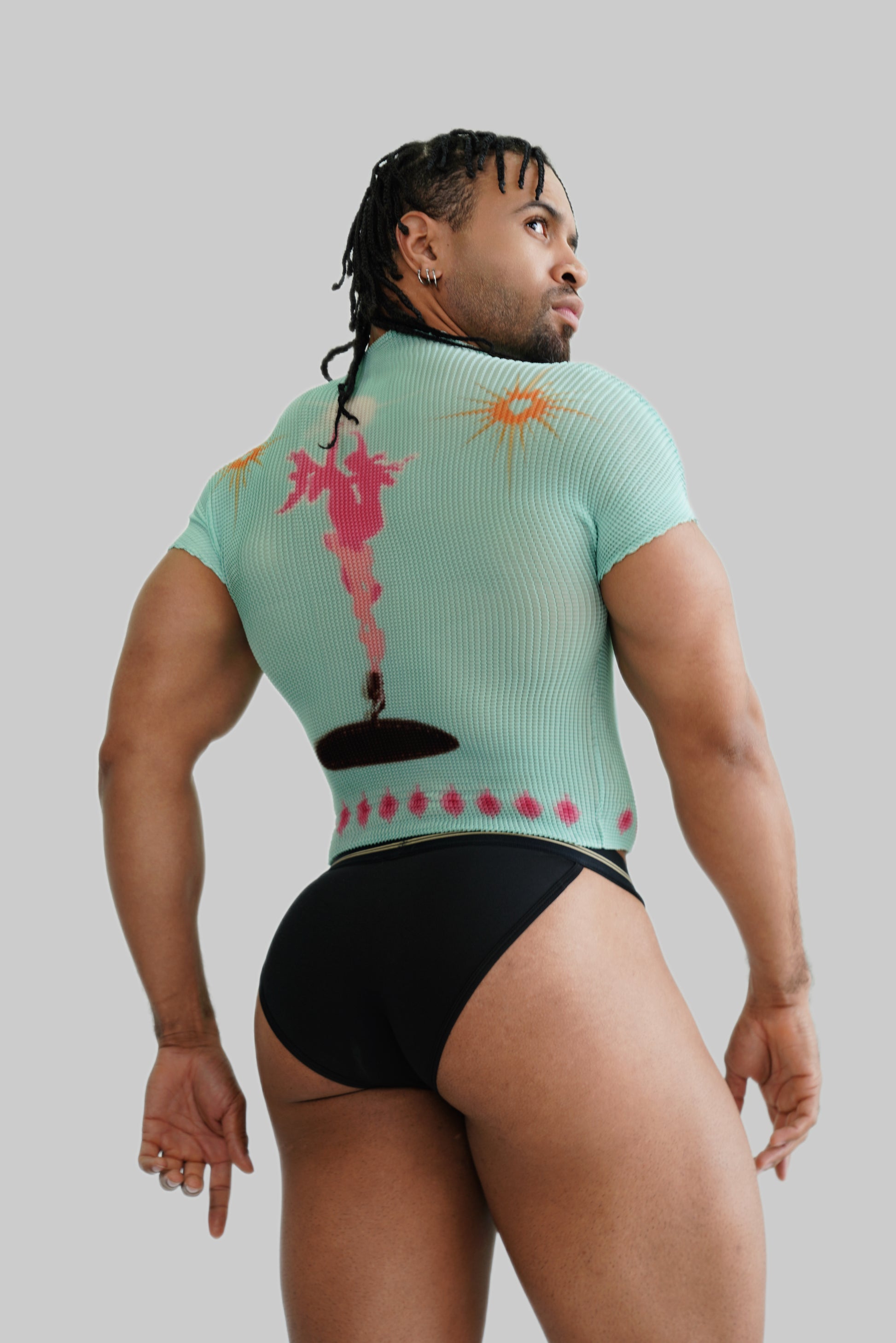 Y2K Mint Waffle Mens Top